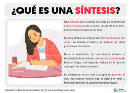 Sintesis: es la identificación de ideas principales de un texto, con una interpretación personal. Carácter:a) Leer de manera general el texto. b) Seleccionar las ideas más importantes. c) Eliminar la información poco relevante. d) Redactar el informe final, con base en la interpretación personal (parafraseada, estructurada y enriquecida.
